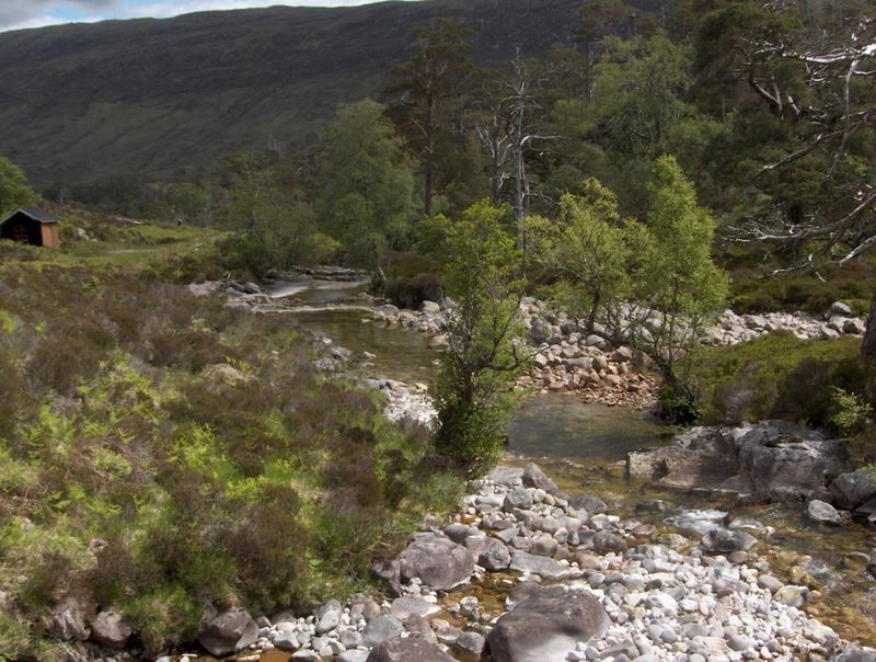 Achnasheen2009 -- coming towards the burn and the bothy (upper left side)