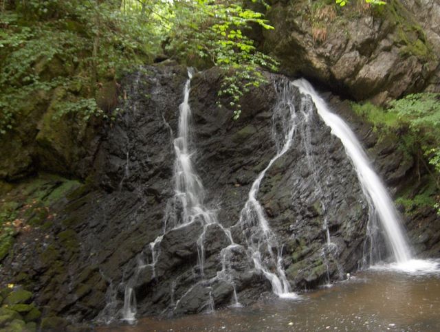 Scotland 2008 -- When I came to the first set of waterfalls the rain intensified. I went on up a steep slippery path and finally reached the end of the glen.