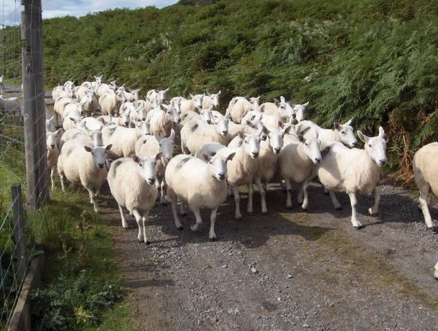 Scotland 2008 -- Sheep near Kinlochewe, almost back at Incheril I met a shephard on a quad chasing his sheep.