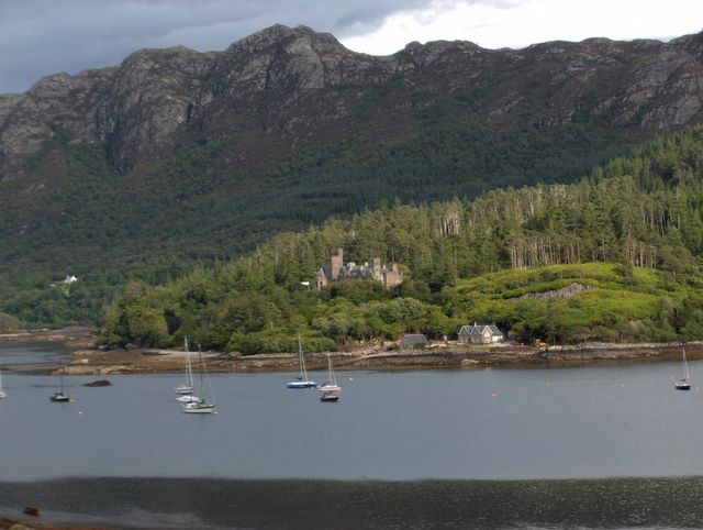 Scotland 2008 -- Duncraig Castle from Plockton harbour. There is a nice walk around the bay up to the castle.